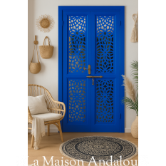Porte moucharabieh peinte bleu Chefchaouen.Nous vous proposons different