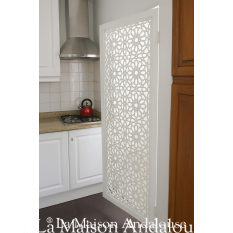 Magnifique porte en claustra Khéops blanche dans une cuisine, ouv