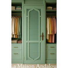 Porte de placard claustra Alexandrie, avec tête de lit en bois brut ou bois peint.