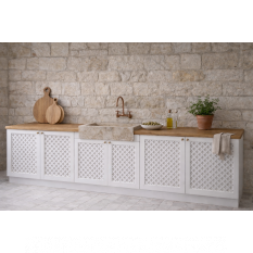Une touche d'originalité dans votre cuisine avec ce meuble réalisé sur mesure avec des portes en claustra ajouré.