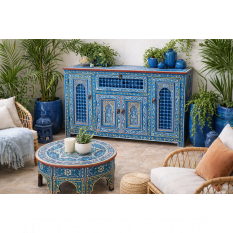 La douceur des tons pastels pour ce meuble en zouak traditionnel donnera une touche originale à votre espace.