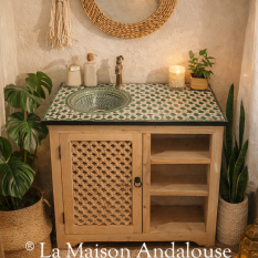 Meuble de salle de bain 1 porte et 3 étagères avec vasque céramique de Fès, dimensions 90 x 50cm - H85cm.