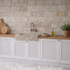 Une touche d'originalité dans votre cuisine avec ce meuble réalisé sur mesure avec des portes en claustra ajouré.