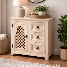 Petit meuble de rangement oriental 1 porte et 3 tiroirs.