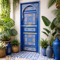 Réalisation d'une porte pour un patio dans les tons bleu majorelle. Réalisation possible dans différentes couleurs.