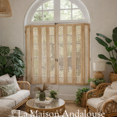 Fabrication sur mesure de volets pliants moucharabieh en cèdre.