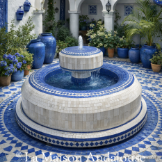 Magnifique bassin rond en zellige, sur roulette et base résine ce qui permet la manipulation de ce bassin trés facilement, équipé de sa pompe interne, le bassin zellige et pret à l'emploi,. Dimension total 70cm, diamétre 109cm, hauteur sol bassin 45cm.