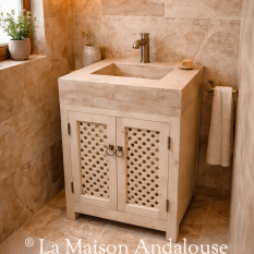 Meuble de sdb porte moucharabieh avec vasque en travertin dimension 80cmx50cmxh85cm.