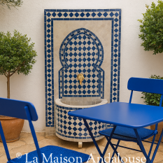 Fontaine murale en zellige sur roulette. Equipée d'une pompe en circuit fermé. Prête à l'emploi. Dimensions 100 cm x 60 cm.Garantie 2 ans.